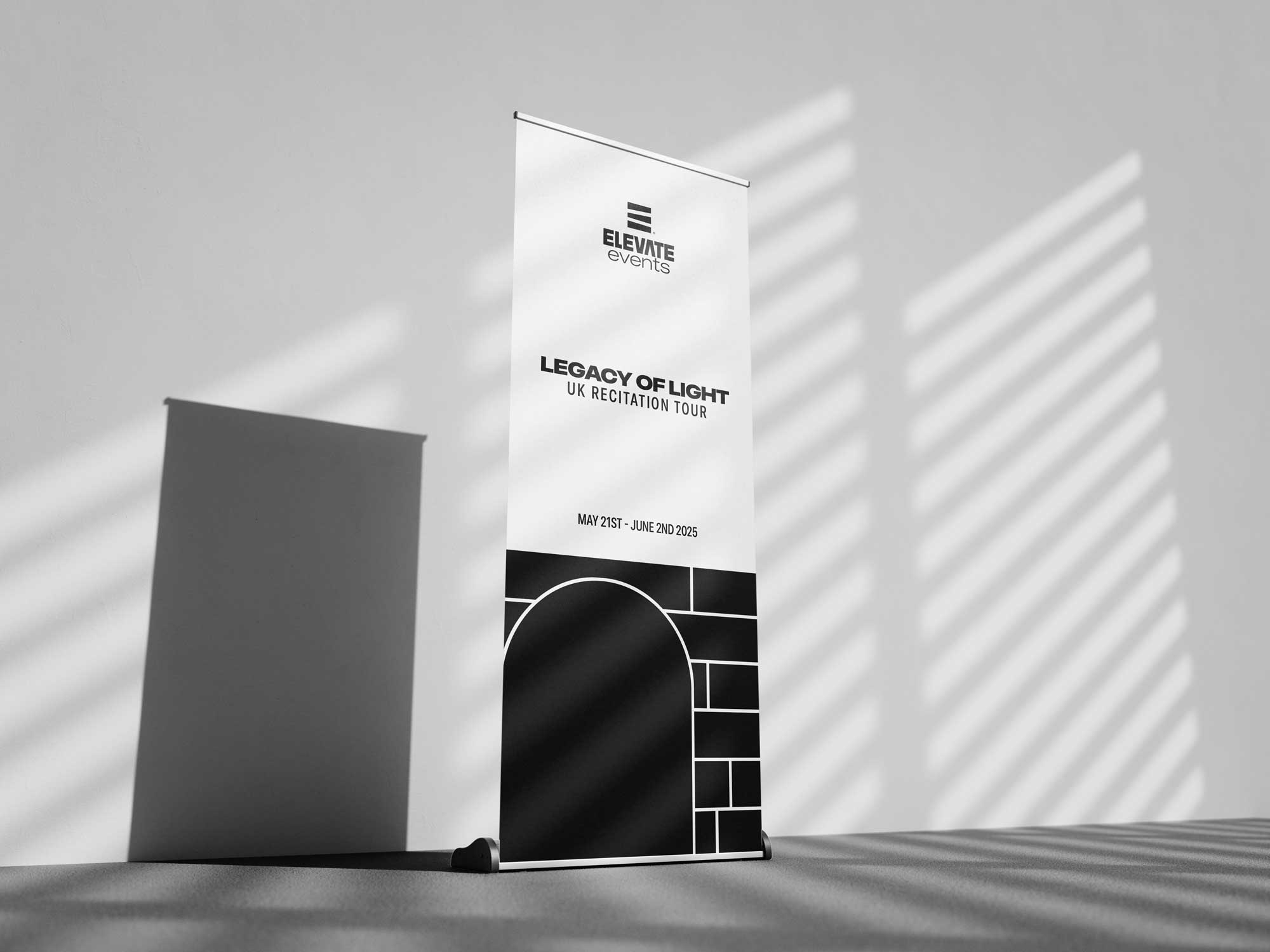 The visual identity for Elevate Events is built around the core idea of upliftment — spiritually, socially, and experientially. The logo mark transforms the letter E into three ascending bars, symbolizing elevation, progress. This upward motion reflects the brand’s mission: to bring communities together and raise the standard of faith-centered experiences across the UK. The bold, modern typography reinforces professionalism and trust, while the clean geometric structure ensures versatility across digital and event environments. The overall direction balances contemporary minimalism with a sense of purpose — capturing the essence of a brand that aims not just to host events, but to elevate every moment.
